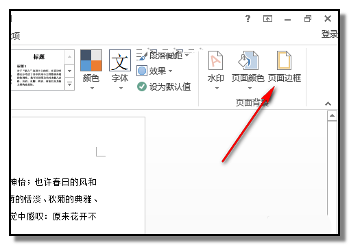 2、我们用鼠标在"设计"选项卡这里点下,在下方展开的各项命令中,在右侧,点下"页面边框"