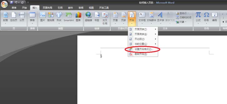 2、接着"页码"点击后会出现下拉菜单,选择"设置页码格式"