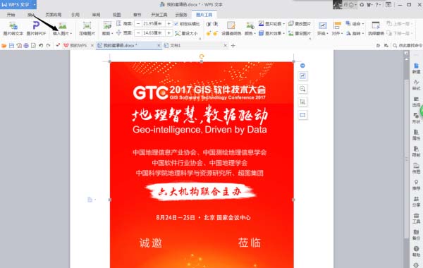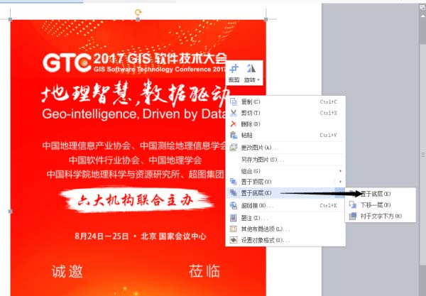 1、新建word并打开,插入邀请函模板图片,将图片设置为文字环绕,并置于底层