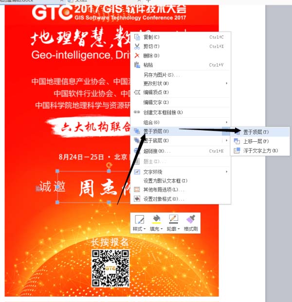 2、插入文本框,并将文本框拖拽到图片的你想要的位置,去掉边框,背景色,调整字体,颜色,大小等,并将文本框置于顶层