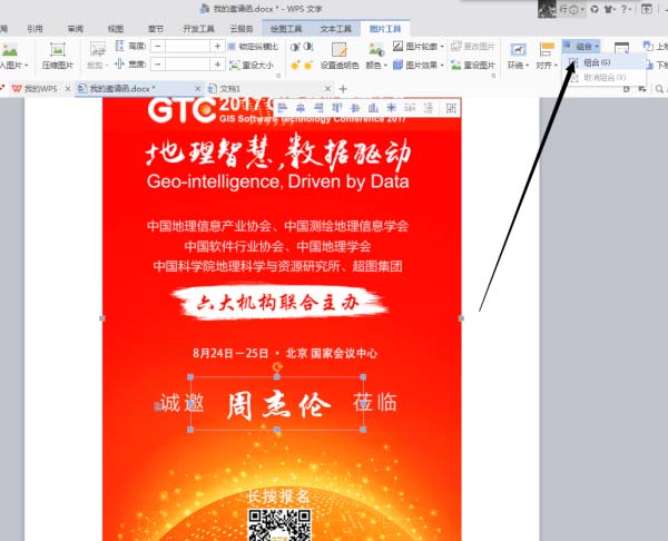 3、选择文本框的边缘线,然后按住ctrl,在左键单击图片,会发现图片和文本框都被选中了,点击【组合】,这样它俩就合为一体啦