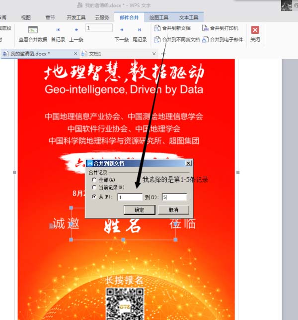 用一张模板邀请函通过Word生成批量的带有用户姓名的专属邀请函。