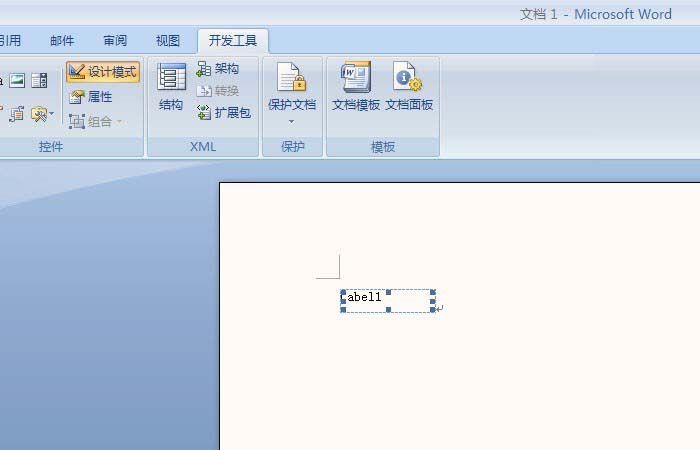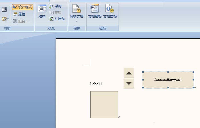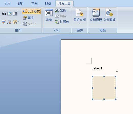 2、鼠标左键选择一个【Label控件】,在word中绘制出该控件,可拖动控件四周节点控制大小,也可移动位置,如下图所示。