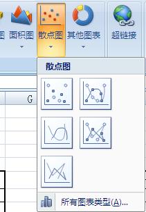 3、在上方工具栏里选插入散点图,并选中第一个类型的散点图