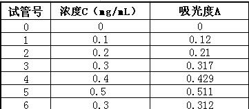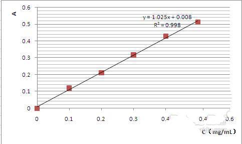 8、将试管6中的吸光度值代入图表中得到的公式Y=1.025X+0.008后可得到所求成分的含量,即X的值。