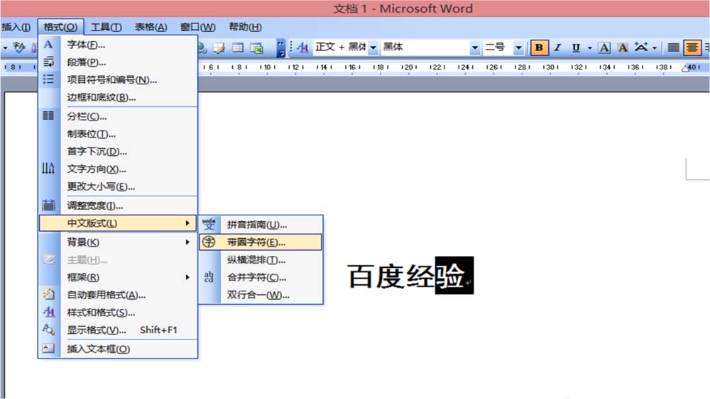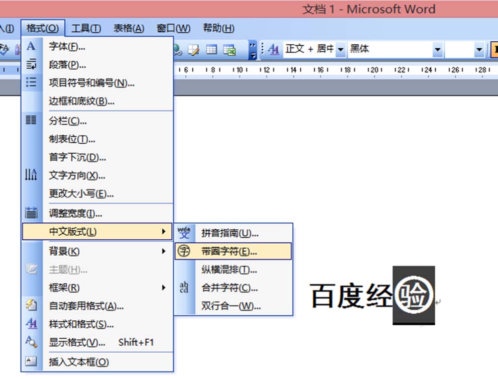 1、选中带圈的文字,然后点击格式——中文版式——带圈字符。