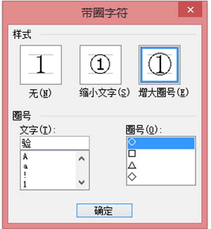 3、在带圈字符的选项卡中,选择喜欢的版式,比如"增大圈号"并点击确定,文字就自动外面带圈了。