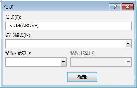 6、弹出"公式"对话框,此时,在公式文本框中自动显示公式"=SUM(ABOVE)",单击"确定"按钮。该公式表示对单元格上方的数据进行求和。