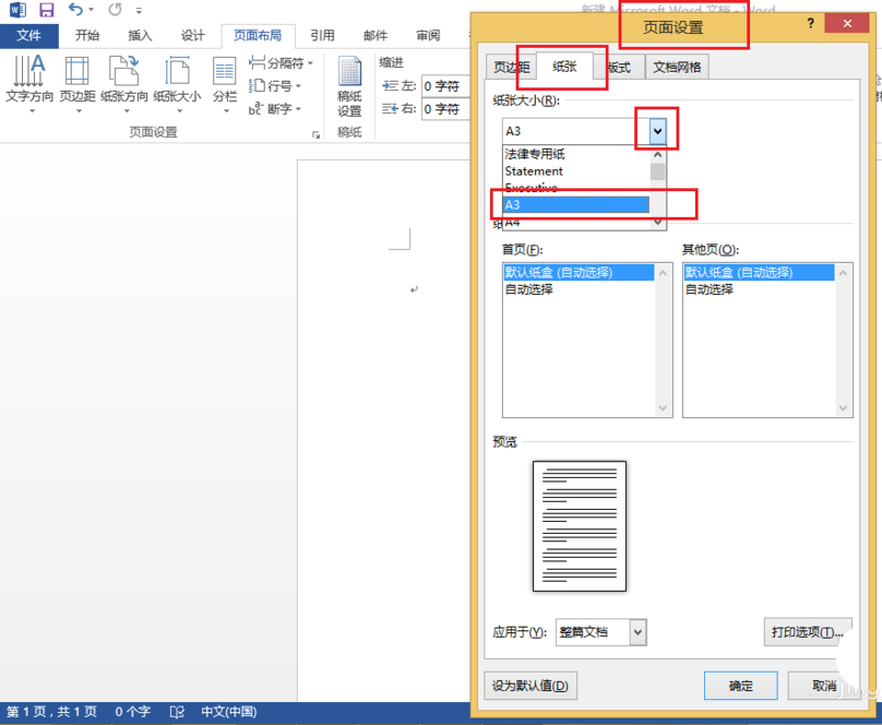 Word怎么设置文件为A3纸张格式?