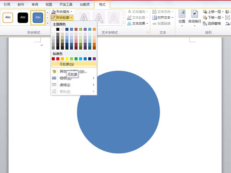 3、选择正圆,执行格式-形状轮廓命令,设置为无轮廓。
