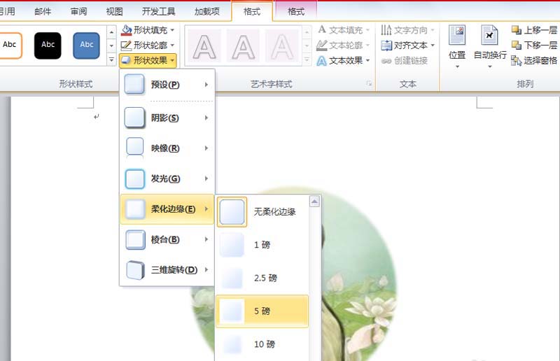 5、执行格式-形状效果-柔化边缘命令,从菜单中选择5磅。