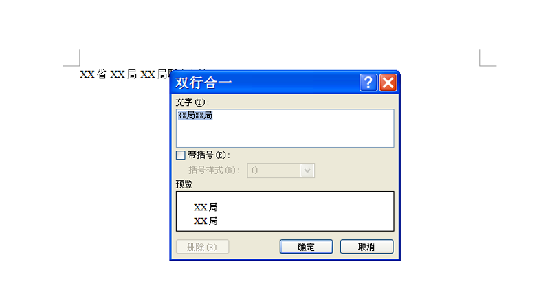 3、从中选择双行合一选项,弹出双行合一对话框后,直接点击确定按钮。