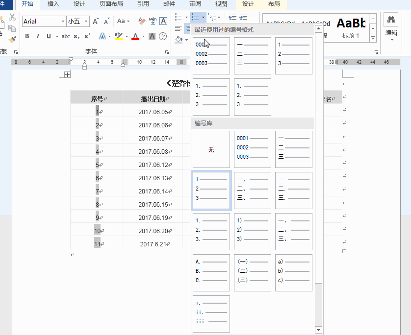 Word表格中怎么实现序列自动填充? Word自动编号的教程