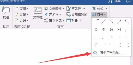 3、插着在工具栏上找到"符号"图标,点击下拉菜单后选择"其它符号"快捷链接