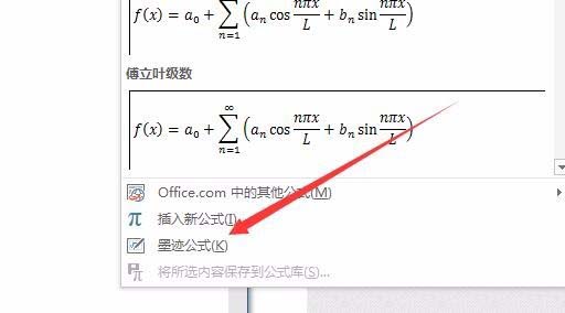 3、在弹出的下拉菜单中我们选择"墨迹公式"菜单项
