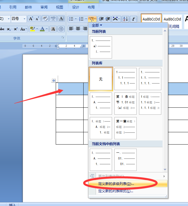 6、同理在word中插入的表格,在输入列表式内容时,可以通过设置新的多级列表形式快速的输入,不用自己再一个一个的输入,快速方便。如下图。