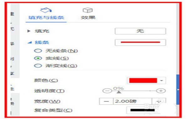 5、也可以选中直线,单击右键,找到设置对象格式,单击一下,在右侧就会出现对线条的具体设置功能了,有粗细,颜色,填充等。