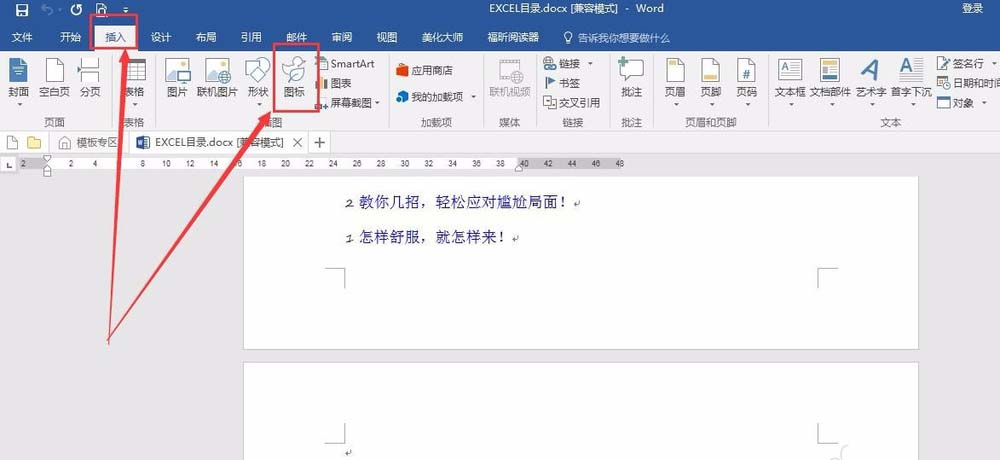 2、依次点击"工具栏"、"插入",可以发现在形状右侧增加了一个新功能"图标",可以非常方便的导入一些常用小图标。