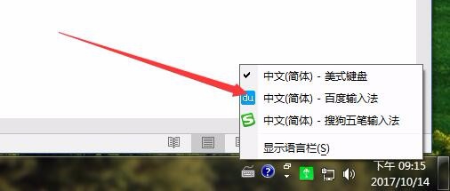1、打开Word文档后,我们点击右下角的输入法图标,然后在弹出菜单中选择"百度输入法"菜单项,切换当前的输入法为百度输入法