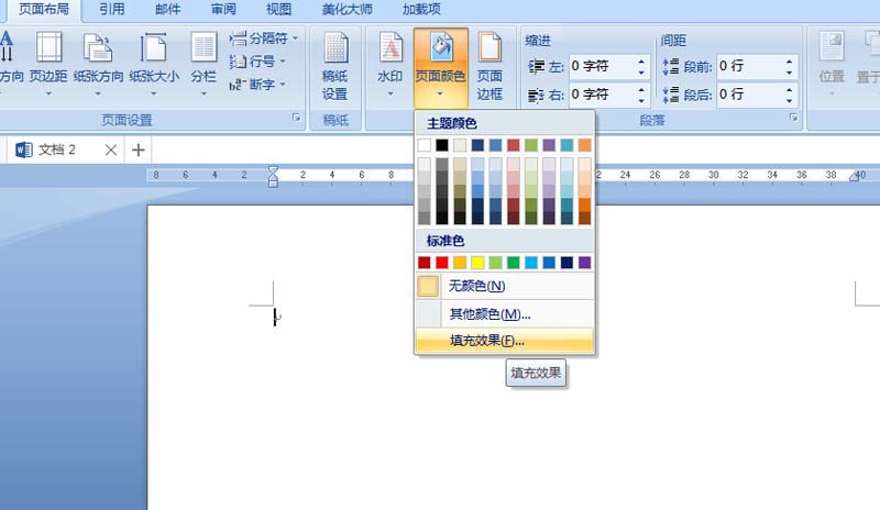 1、首先启动word2007,执行页面布局-页面颜色命令,从中选择填充效果选项。