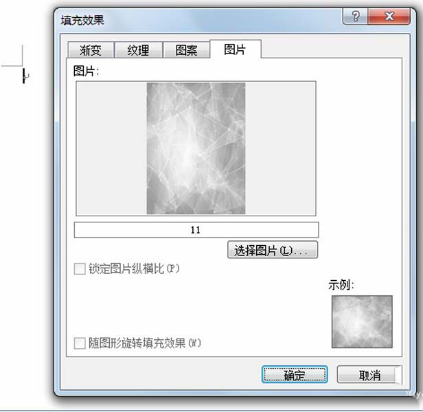 2、在弹出的填充效果对话框中切换到图片选项,点击选择图片按钮,选择一张图片填充。