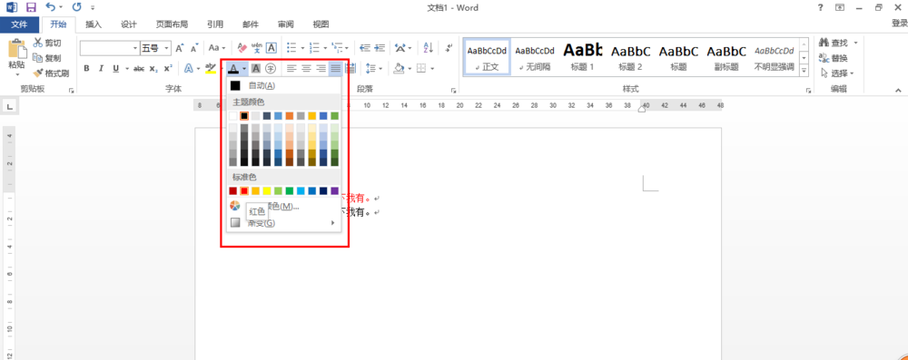 2、选中第一行字体,改变其颜色,此处小编把字体改为红色,如图所示
