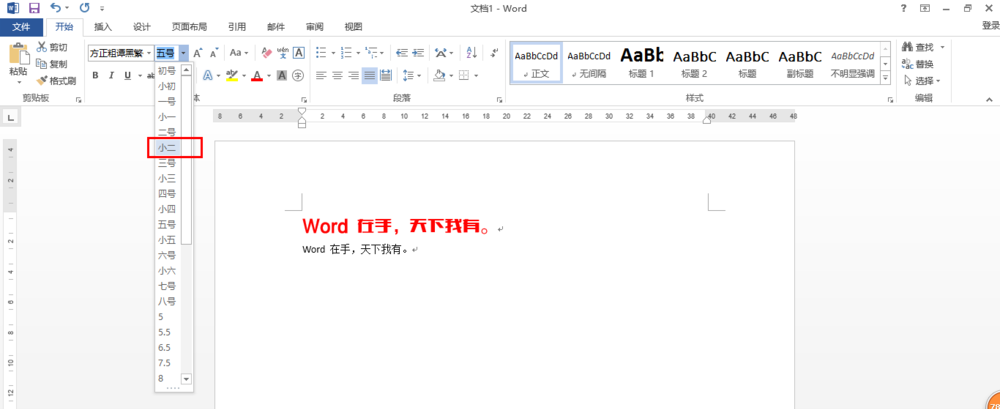 4、再把字号设置为二号