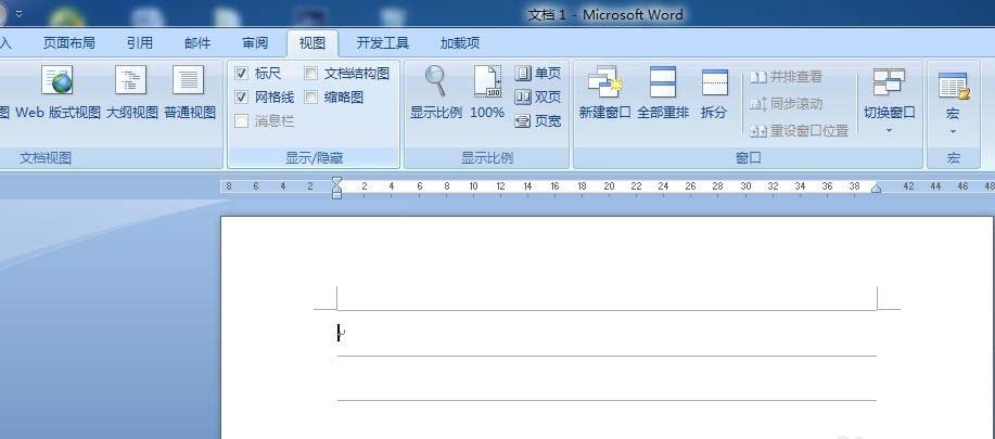 2、回到"视图"选项,将"网格线"前面的小勾打上,这样,我们就可以看到页面上有横向的网格线了。