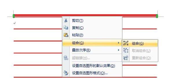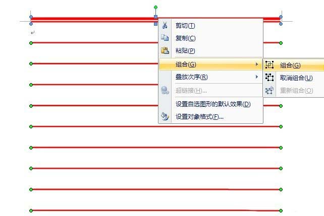 8、然后在首尾各复制亮条直线,将其粗细设置为4.5磅,按住Alt键慢慢调整至第一条直线和最后一条的上方和下面紧挨出,然后,将其进行组合,然后将所有直线全部进行组合。