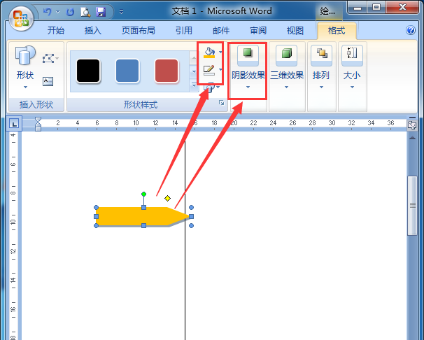 3、 点中刚刚绘制好的五边形,给它填充一个橙色,无描边,增加一个阴影效果,如图所示;