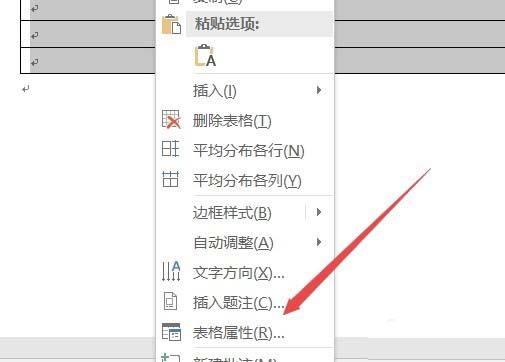 4、在Word文档中右键点击刚刚生成的表格,然后在弹出菜单中点击表格属性菜单项。