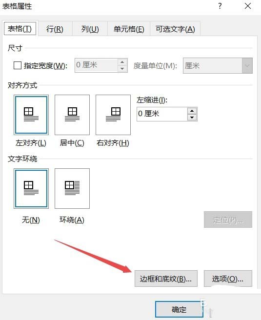7、接着再在表格属性窗口中的表格窗口中点击边框和底纹按钮