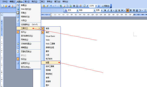 2、单击"视图"下面"工具栏"——"绘图"命令。