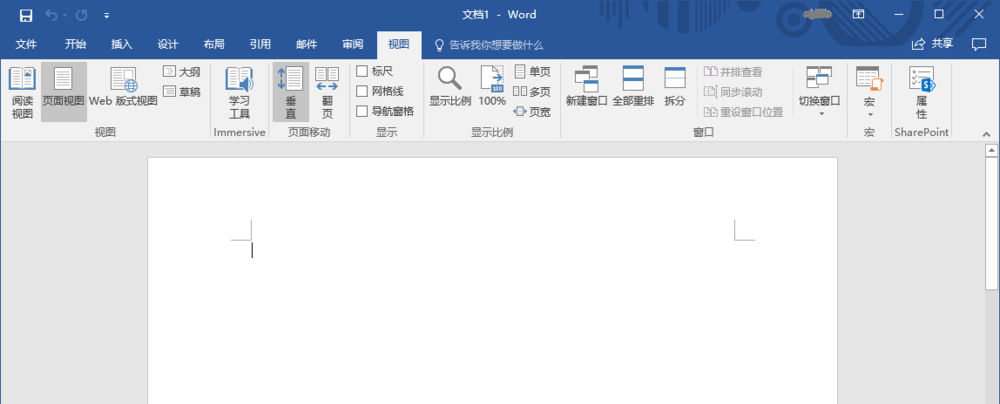 2、选择新建空白文档,显示Word 2016用户主界面。