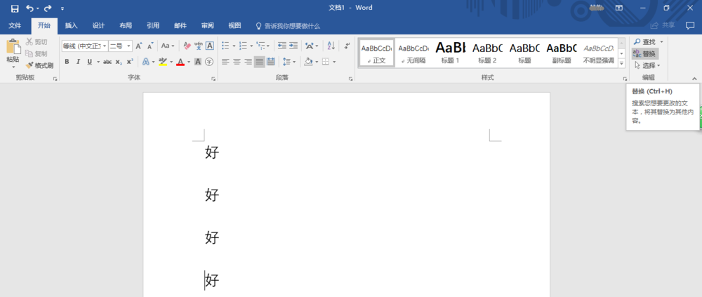 4、"查找内容"输入好、"替换为"输入^c,点击全部替换。