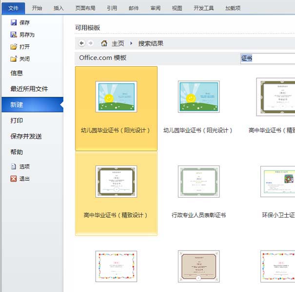 1、首先启发word2010,执行文件-新建命令,从中选择证书搜索并下载。