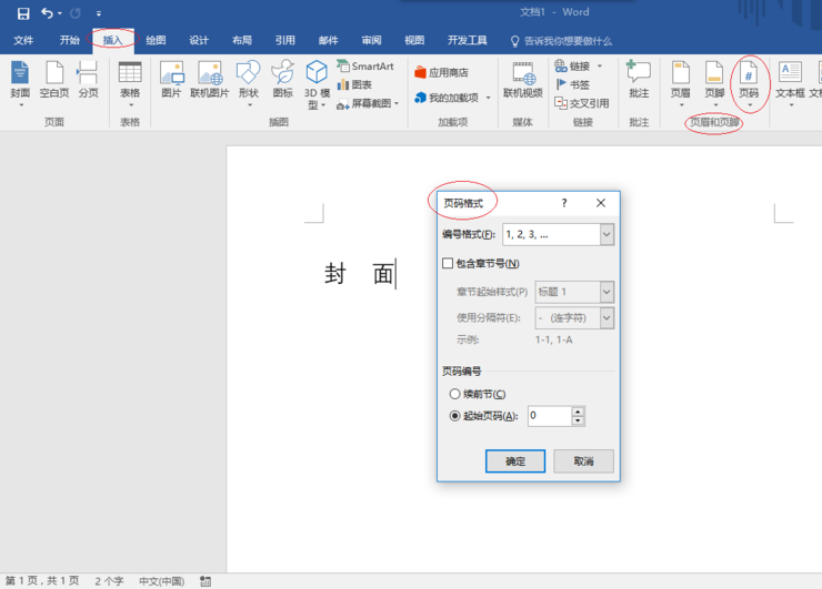 Word2016中封面怎么设置不显示页码?