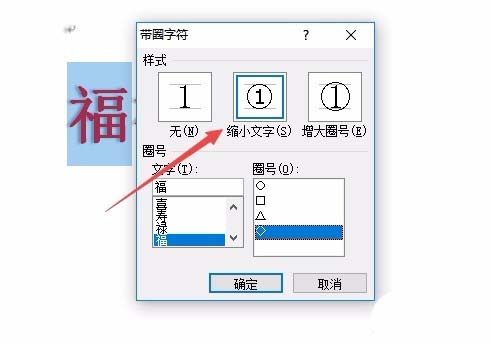 5、我们了可以在带圈字符窗口中设置"缩小文字"一项。