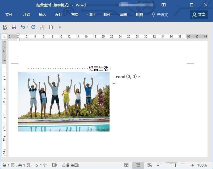 3、输入文中内容"=rand(3,)"后,点击Enter键。括号中的(3,3)表示插入3段,每段3行的占位符文本。