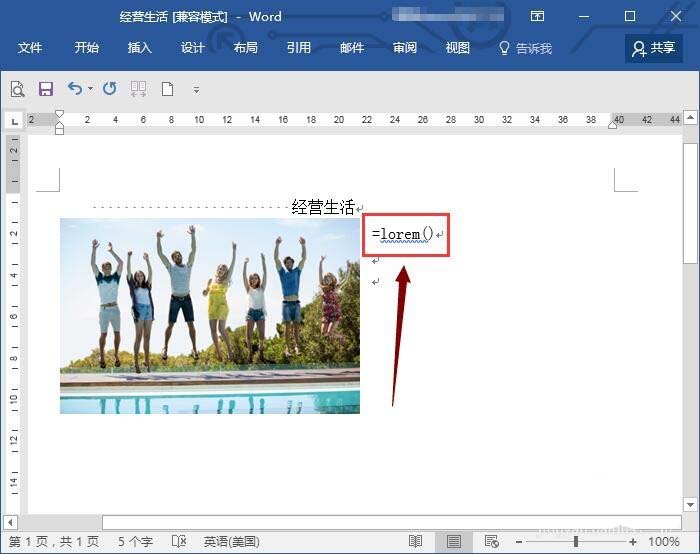 6、输入"=lorem()",然后点击Enter键。这样就输入了外文占位符文本。