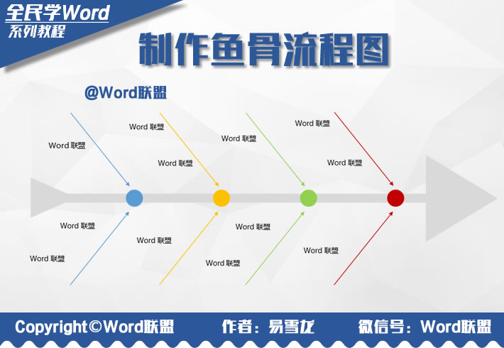 如何使用Word制作鱼骨流程图?还在为制作流程图而犯愁吗?虽说Word中SmartArt的样式有点多,但是找来找去也没几个像样的,还不如自己动手来制作!流程图的样式非常多,需求也各有不同。前面易雪龙老师讲过《手工打造超赞流程图:全民学Word》,这里易老师再来为大家分享一下鱼骨流程图的制作方法,效果非常漂亮,感兴趣的朋友一起去看看吧!