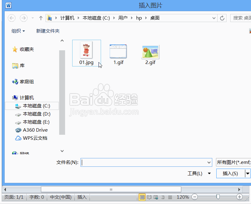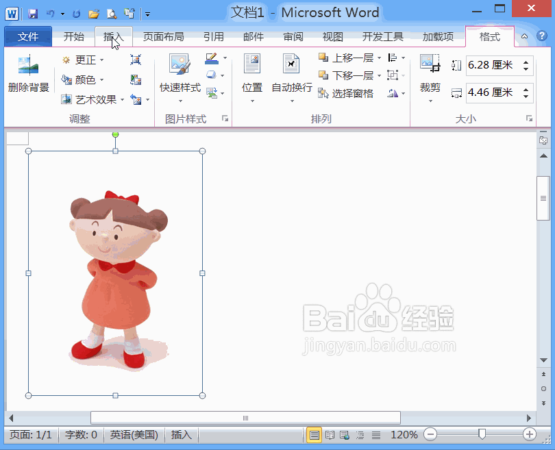 2、点击图片选项弹出插入图片对话框,选择图片将图片插入进来,然后调节图片的大小至合适,如图所示:
