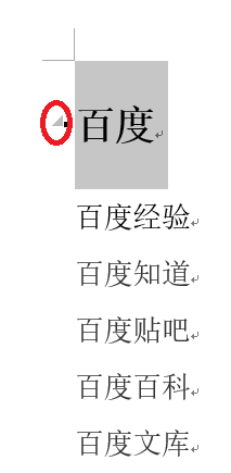 4、让鼠标接近文字的前面,就会出现三角形的图标,点击它。