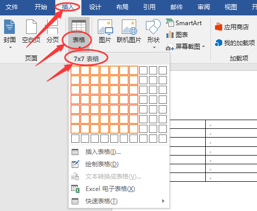 1、在空白的Word文档中插入一个【7×7】的表格