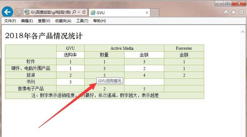 6、现在我们打开保存好的网页格式文档,文档在浏览器中被打开,鼠标指向表格,就出现了设置好的附加信息。