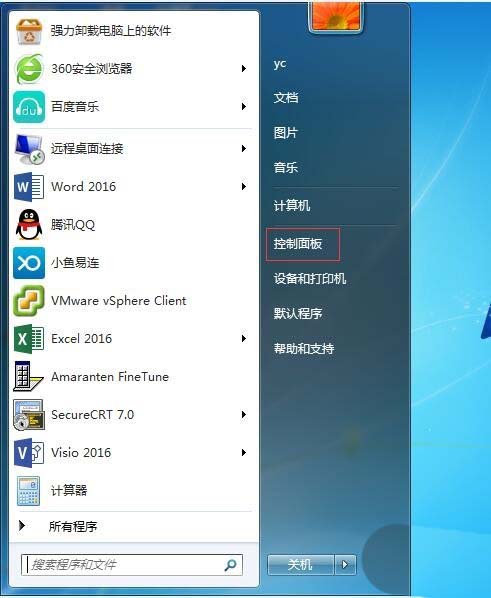 1、点击开始,打开控制面板