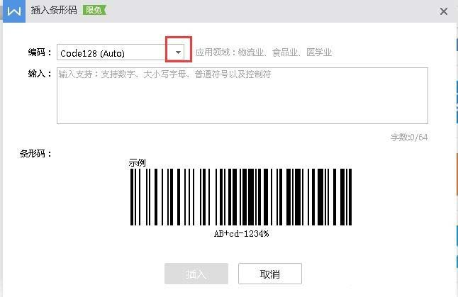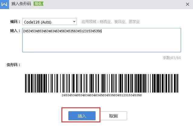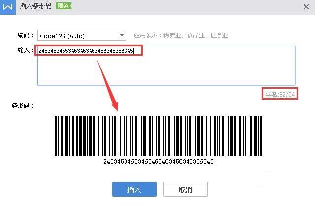 7、根据要求输入数字或数字字母,在输入的同时,条形码立即生成,记得不能超过64位