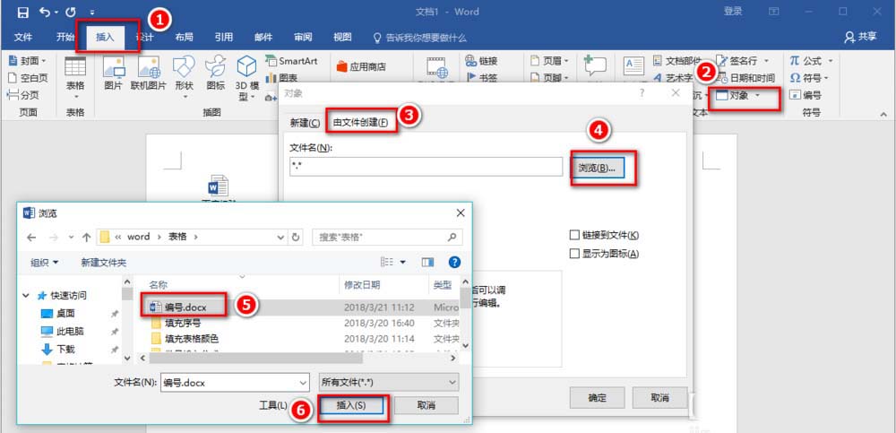 1、将光标定位到需要插入附件的地方,点击"插入"——"对象"——"由文件创建"——"浏览"——找到文档——"插入"。这种方式可以添加已有的文件。