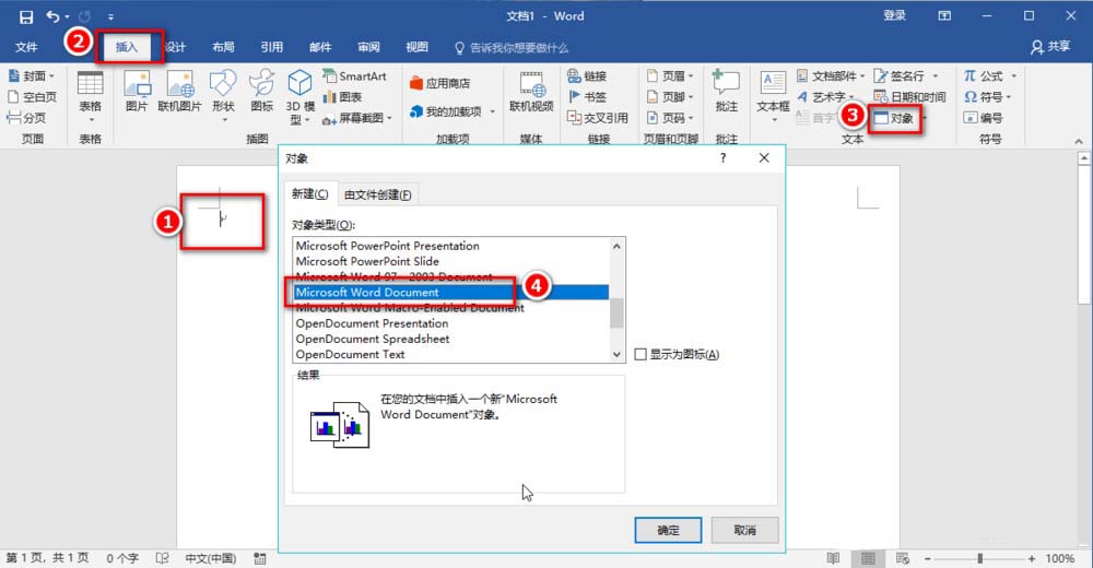 1、用鼠标点击需要插入附件的地方,依次点击"插入"——"对象",在"新建"下选择合适的文档,如word、excel、PPT等。用这种方式可以添加空文档为附件。