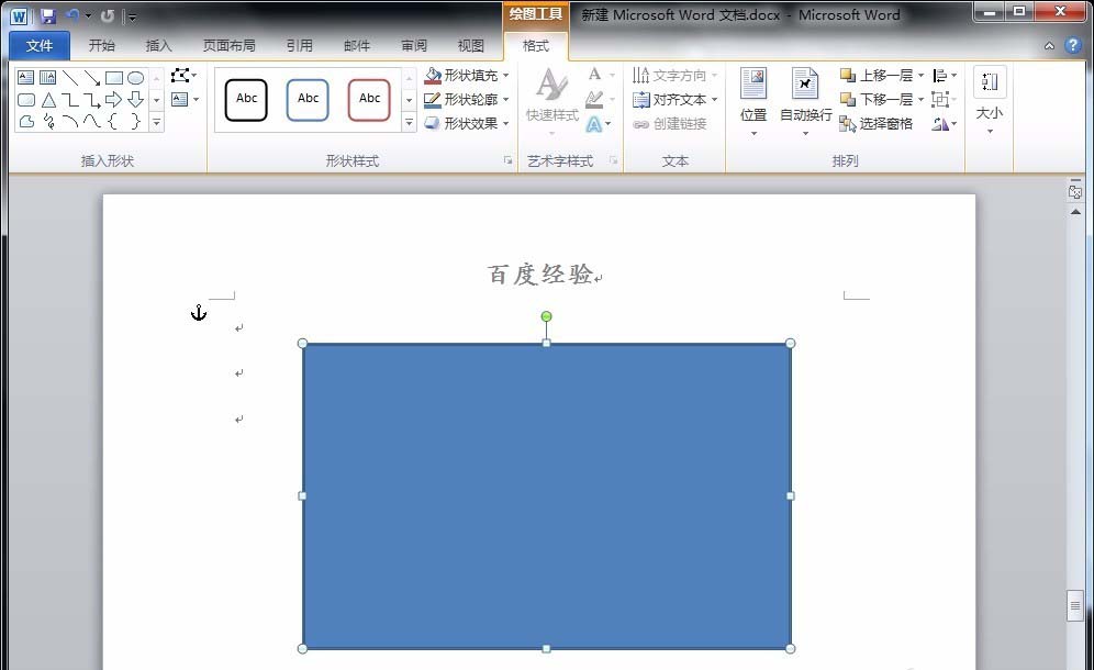 1、首先,打开word文档,点击"插入"菜单中"形状"-"矩形",在文档中绘制出一个长方形。